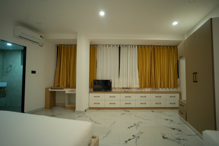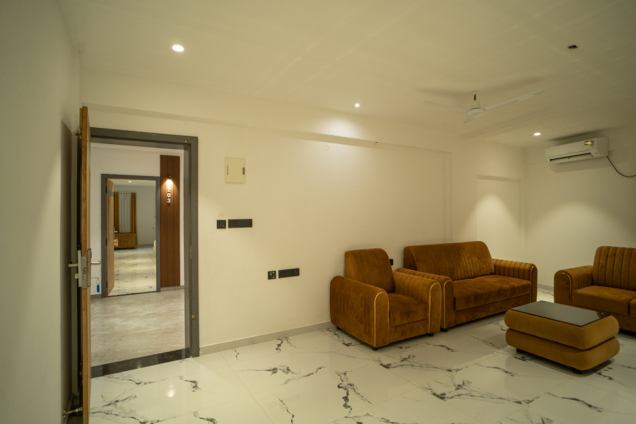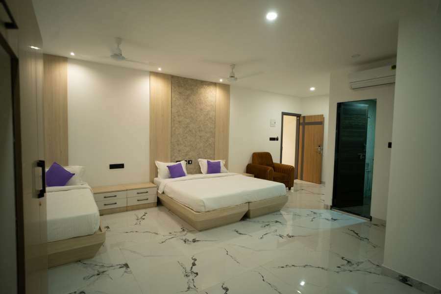 Experience elevated comfort in our Executive Suite – 3 Bed (AC) at Hotel The Mansion, designed for families and groups seeking extra space and luxury. The suite features thoughtfully furnished interiors, premium bedding, modern amenities, and a serene ambiance that ensures complete relaxation. Whether you're staying for business or leisure, this suite offers the perfect blend of elegance, convenience, and comfort for a memorable stay.